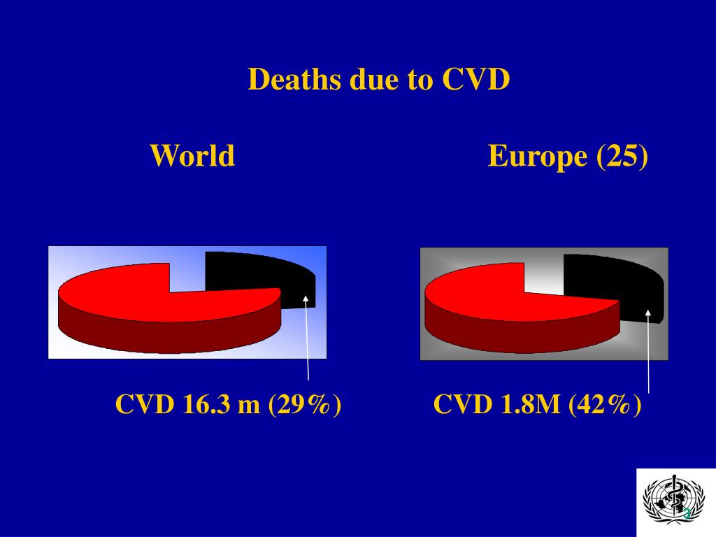 Deaths due to CVD World Europe (25) CVD 16.3 m (29%) CVD 1.8M (42%)