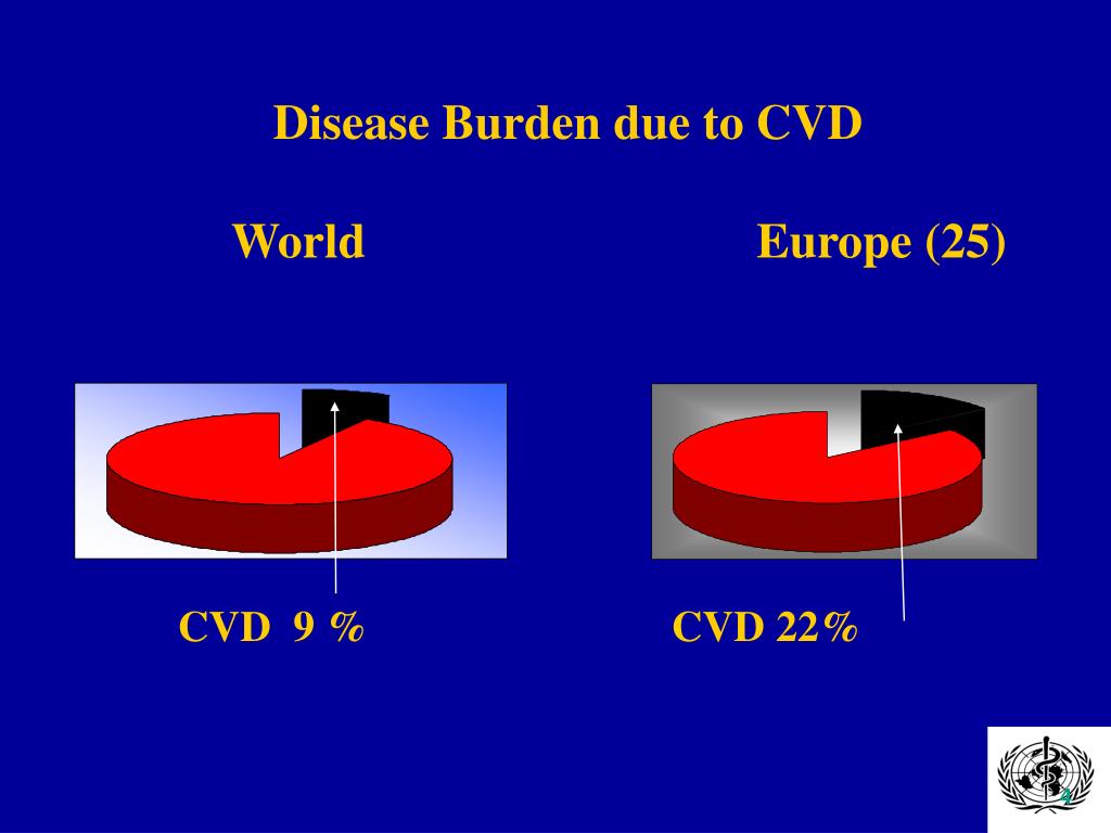 Disease Burden due to CVD World Europe (25) CVD 9 % CVD 22%