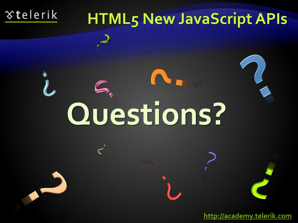 HTML5 New JavaScript APIs ? ? ? ? ? ? ? ? ? ? http://academy.telerik.com