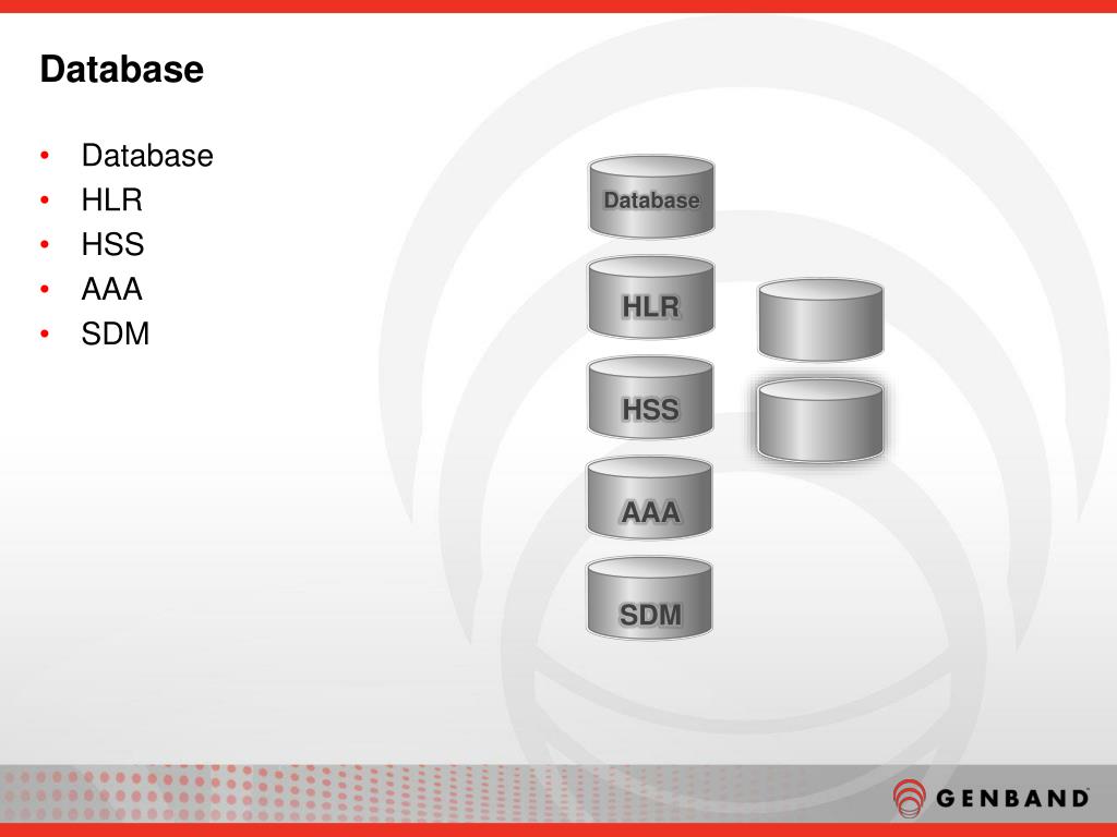 Database • Database • HLR • HSS • AAA • SDM Database HLR HSS AAA SDM