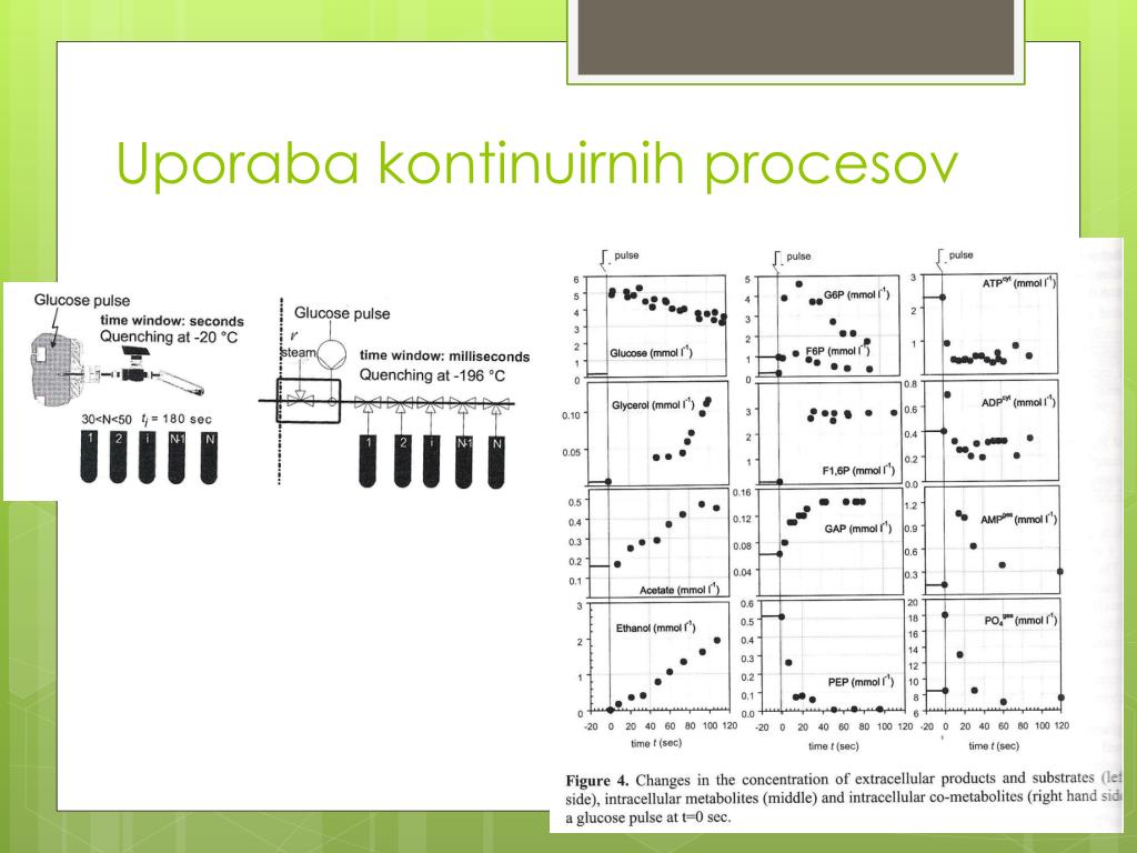 Uporaba kontinuirnih procesov • Industrija • Biološke čistilne naprave • Proizvodnja „single-cell“ proteinov • Kontinuirna proizvodnja piva • Kontinuirna proizvodnjaamino kislin • Kontinuirna proizvodnja organskihkislin • Kontinuirna proizvodnja etanola