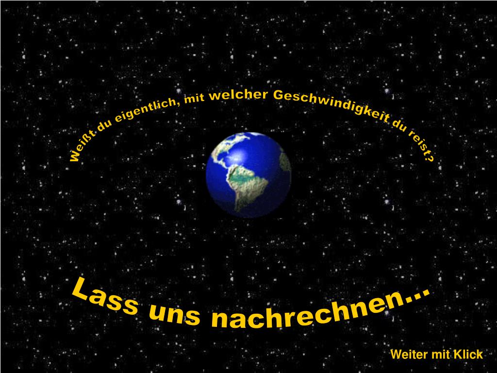 Weißt du eigentlich, mit welcher Geschwindigkeit du reist? Lass uns nachrechnen... Weiter mit Klick