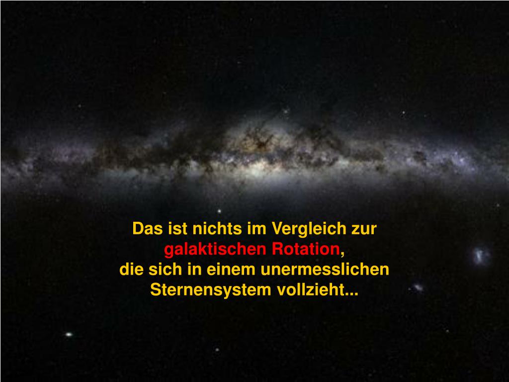 Das ist nichts im Vergleich zur galaktischen Rotation, die sich in einem unermesslichen Sternensystem vollzieht...