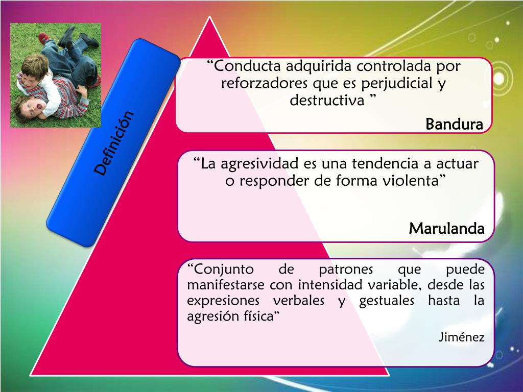 Características de la conducta agresiva • 2 y 3 años • 4 años es verbal • Exceso de cólera • Actos desobediencia ante la autoridad • Amenazas verbales • Daños a cosas materiales • Deterioros en la actividad social y académica • Discusiones y gritos • Pleitos, peleas • Pre- escolares: pegan, muerden, hacen pataletas, desobedecen, no respetan su turno, actitud desafiante