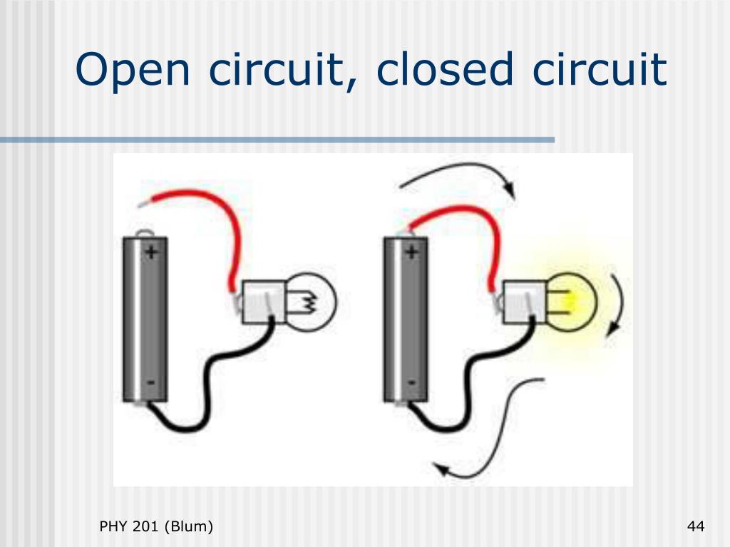 Circuit • A circuit is a closed path along which charges flow. • If there is not a closed path that allows the charge to get back to where it started (without retracing its steps), the circuit is said to be “open” or “broken.” • The path doesn’t have to be unique; there may be more than one path.