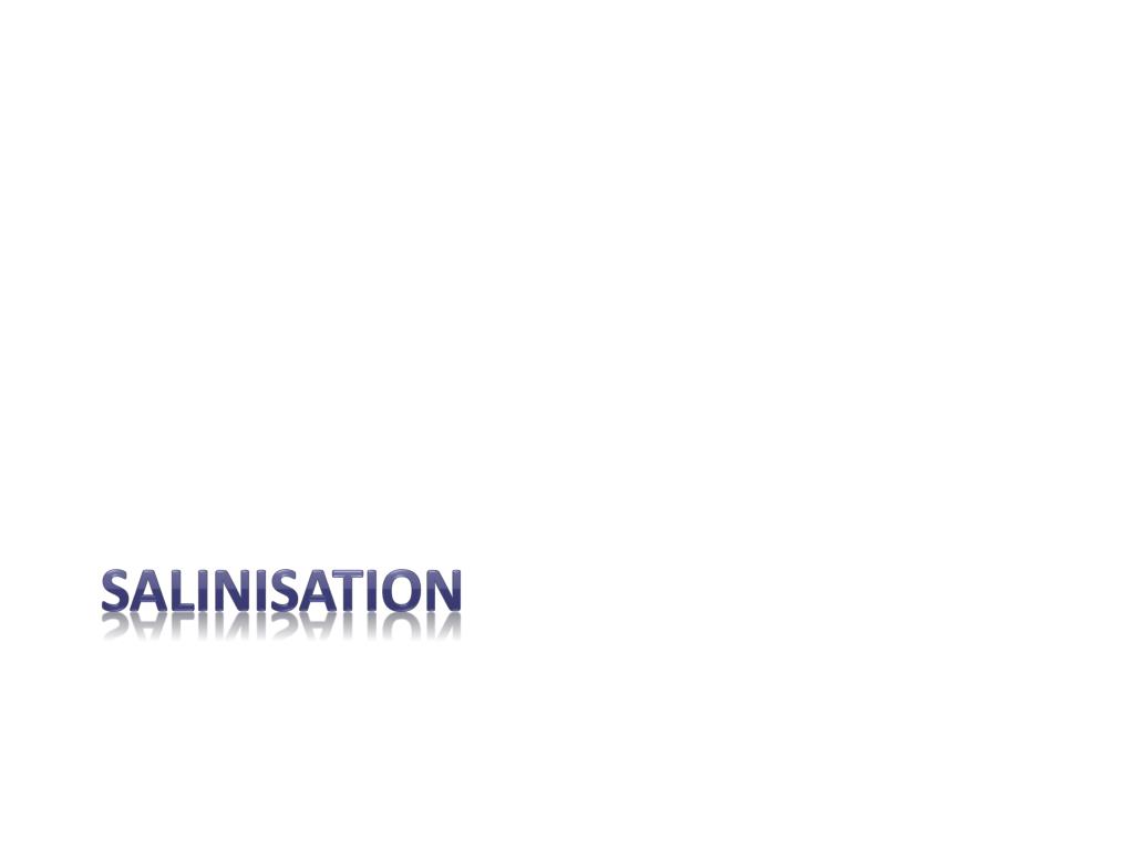 Définition de salinisation Processusd’accumulation de selsminérauxdans le sol. Un sol contenanttrop de selsminérauxperdsafertilité Pakistan http://www.globaleye.org.uk/secondary_spring01/focuson/salinated_soil.html