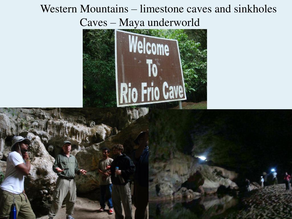 Western Mountains – limestone caves and sinkholes Caves – Maya underworld