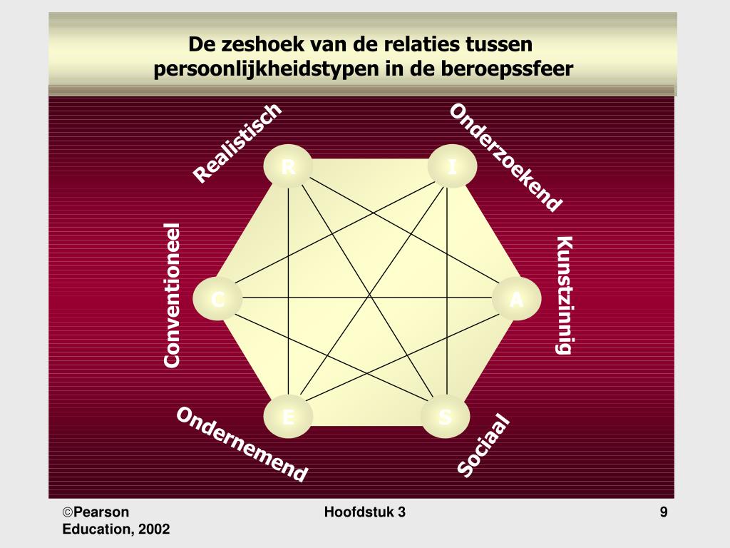 De zeshoek van de relaties tussen persoonlijkheidstypen in de beroepssfeer Realistisch Onderzoekend R I C A Conventioneel Kunstzinnig E S Sociaal Ondernemend Hoofdstuk 3