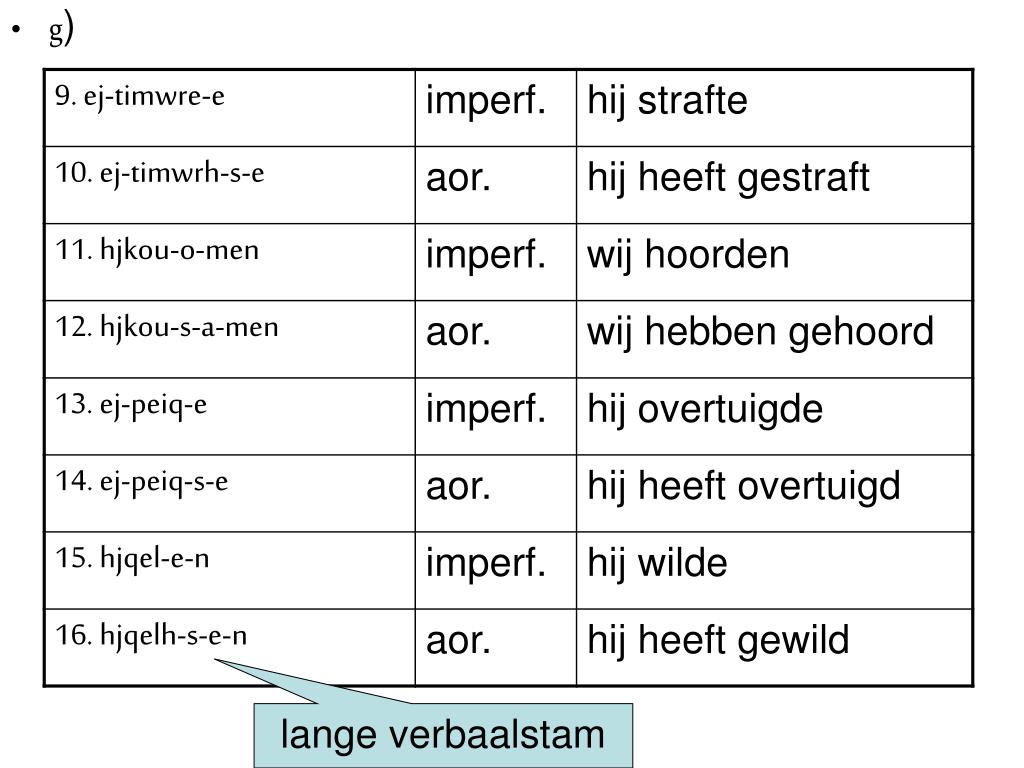 g) lange verbaalstam