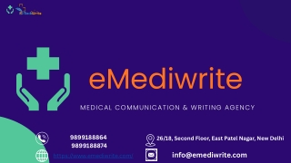 1. eMediwrite MEDICAL COMMUNICATION & WRITING AGENCY 9899188864 9899188874 https://www.emediwrite.com/ 26/18, Second Floor, East Patel Nagar, New Delhi info@emediwrite.com