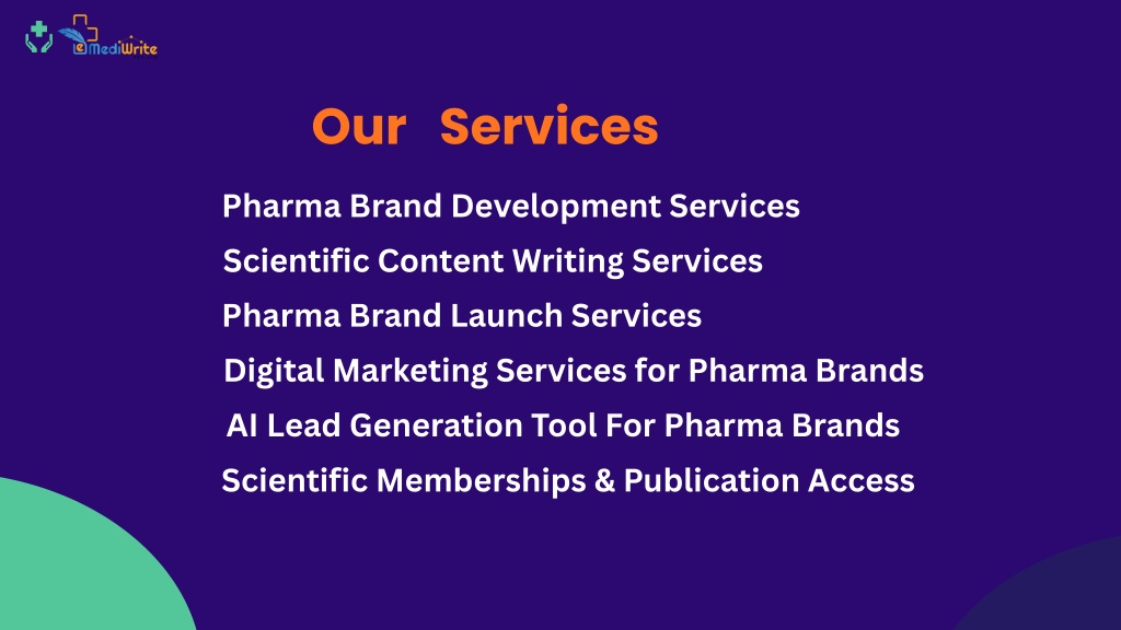 3. Our Services Pharma Brand Development Services Scientific Content Writing Services Pharma Brand Launch Services Digital Marketing Services for Pharma Brands AI Lead Generation Tool For Pharma Brands Scientific Memberships & Publication Access