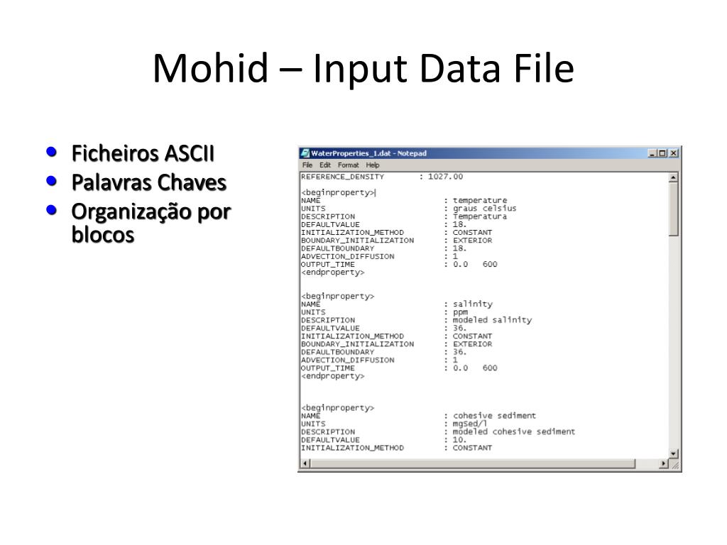 Mohid – Input Data File • Ficheiros ASCII • Palavras Chaves • Organização por blocos