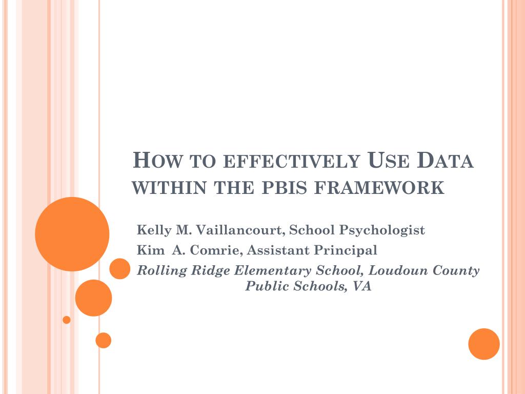 How to effectively Use Data within the pbis framework. Kelly M. Vaillancourt, School Psychologist Kim A. Comrie, Assistant Principal Rolling Ridge Elementary School, Loudoun County Public Schools, VA. Objectives of today’s presentation. Participants will: