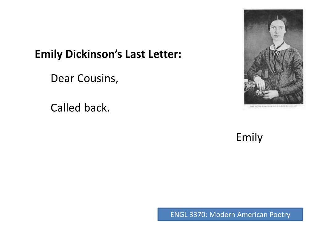 Emily Dickinson’s Last Letter: Dear Cousins, Called back. Emily ENGL 3370: Modern American Poetry