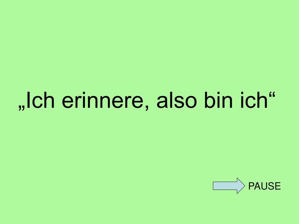 „Ich erinnere, also bin ich“------------------------------------------------------------------------------- „Man muss erst beginnen, sein Gedächtnis zu verlieren, und sei’s nur stückweise, um sich darüber klar zu werden, dass das Gedächtnis unser ganzes Leben ist. Ein Leben ohne Gedächtnis wäre kein Leben… Unser Gedächtnis ist unser Zusammenhalt, unser Grund, unser Handeln, unser Gefühl. Ohne Gedächtnis sind wir nichts… “ (Luis Buñuel)