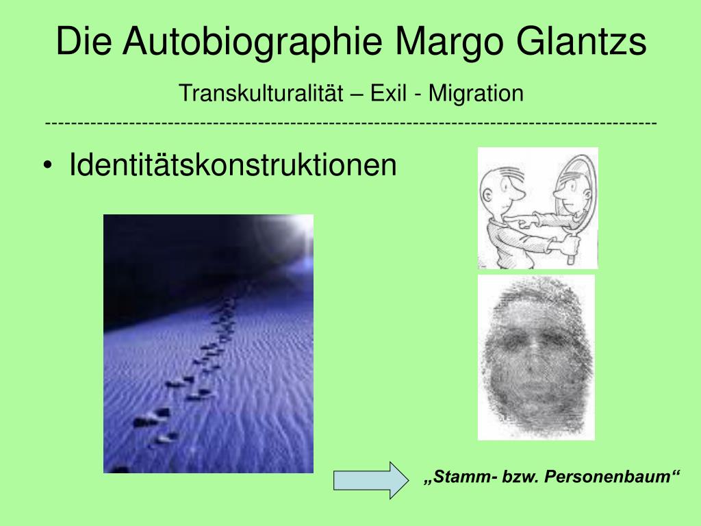 Die Autobiographie Margo GlantzsTranskulturalität – Exil - Migration----------------------------------------------------------------------------------------------- • Identitätskonstruktionen „Stamm- bzw. Personenbaum“