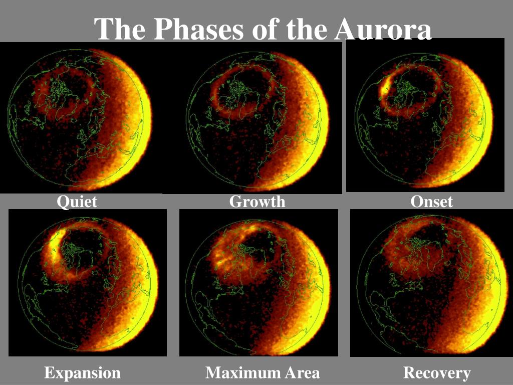 The Phases of the Aurora Quiet Growth Onset Expansion Maximum Area Recovery