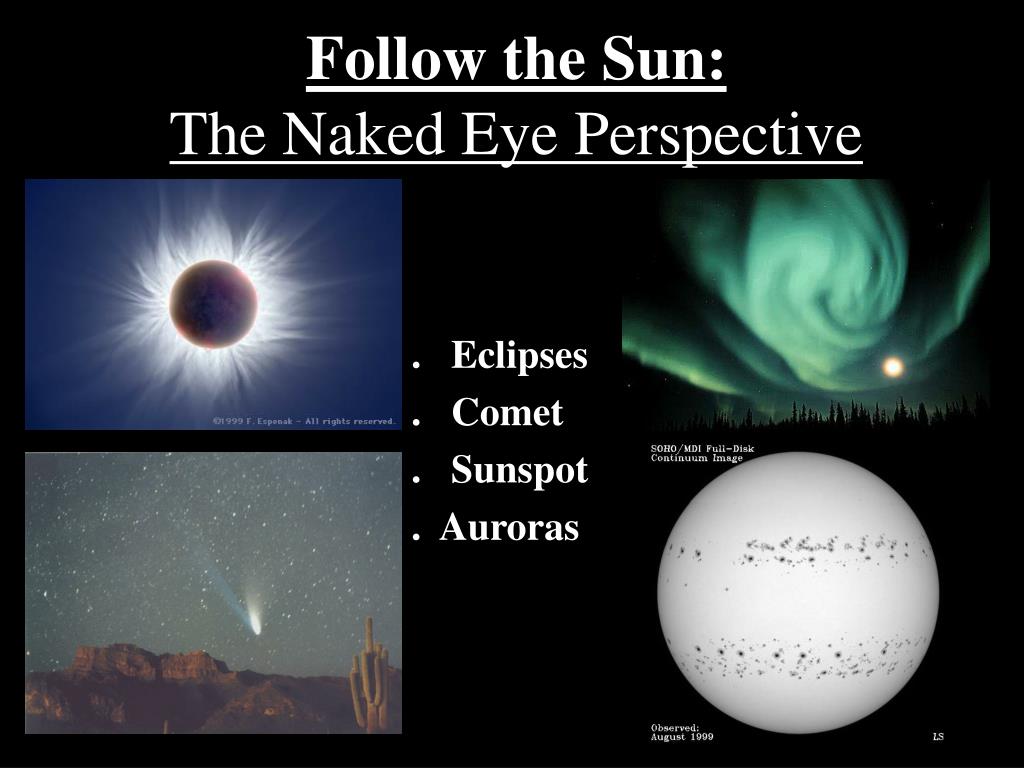 Follow the Sun:The Naked Eye Perspective . Eclipses . Comet . Sunspot . Auroras