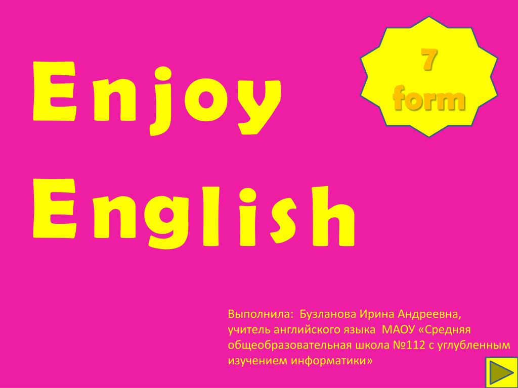 7 form E n o y j E n g s l i h Выполнила: Бузланова Ирина Андреевна, учитель английского языка МАОУ «Средняя общеобразовательная школа №112 с углубленным изучением информатики»