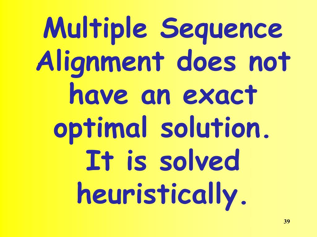 Multiple Sequence Alignment does not have an exact optimal solution. It is solved heuristically.