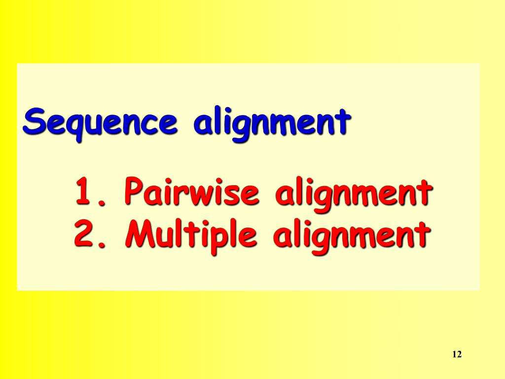 Sequence alignment 1. Pairwise alignment 2. Multiple alignment
