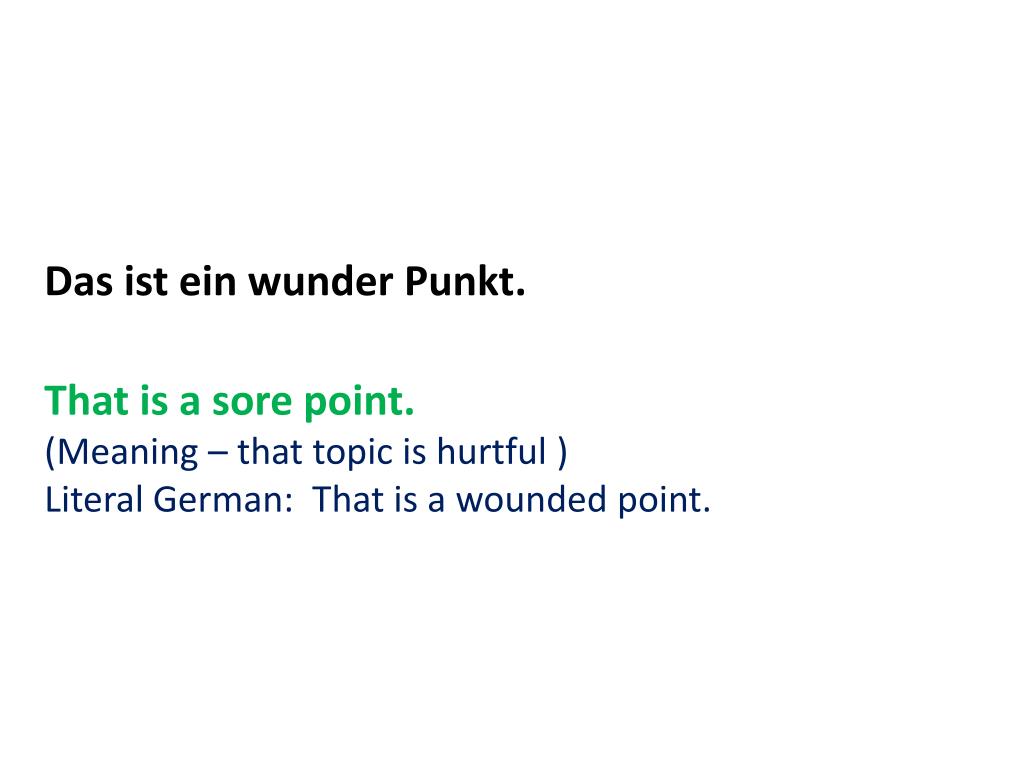 Das isteinwunderPunkt. That is a sore point. (Meaning – that topic is hurtful ) Literal German: That is a wounded point.