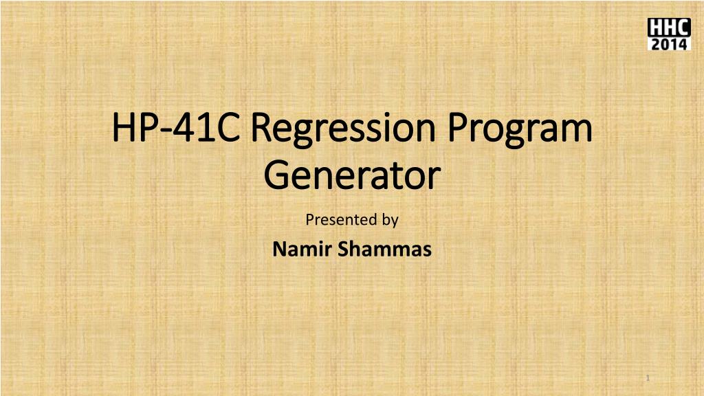 HP-41C Regression Program Generator. Presented by Namir Shammas. William Kolb’s Book. Kolb published a book in 1982 titled Curve Fitting for Programmable Calculators. Aimed at HP-41C programmers. Presented a wide and comprehensive set of regression models.