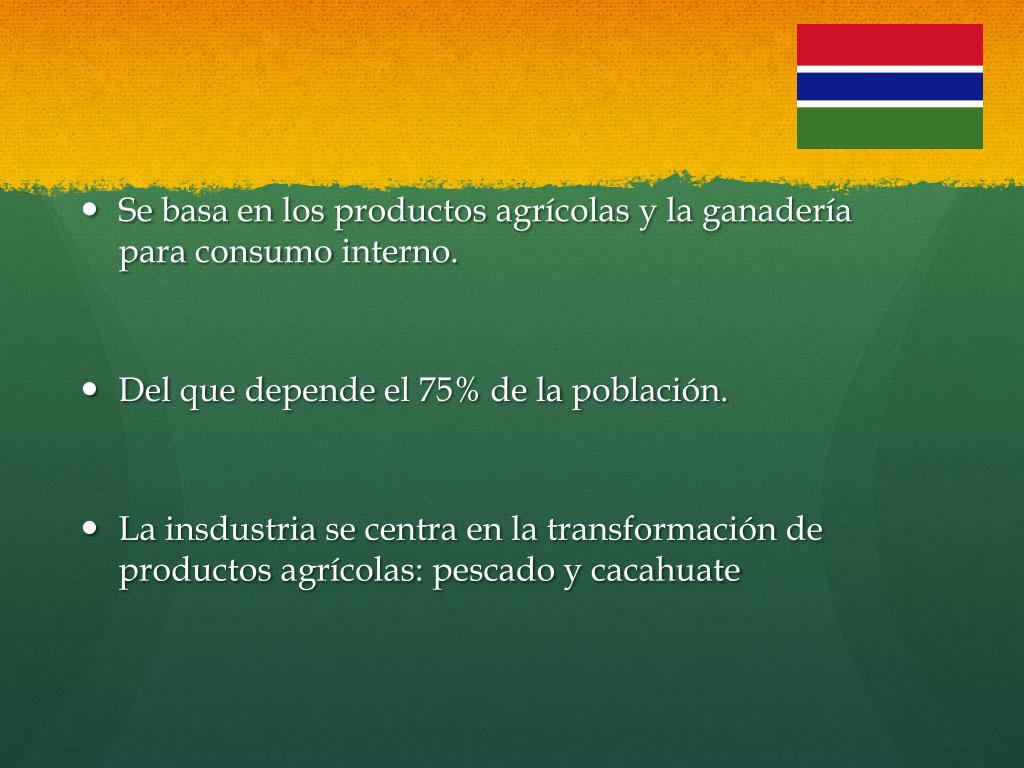 Se basa en los productosagrícolas y la ganaderíaparaconsumointerno. • Del quedepende el 75% de la población. • La insdustria se centra en la transformación de productosagrícolas: pescado y cacahuate