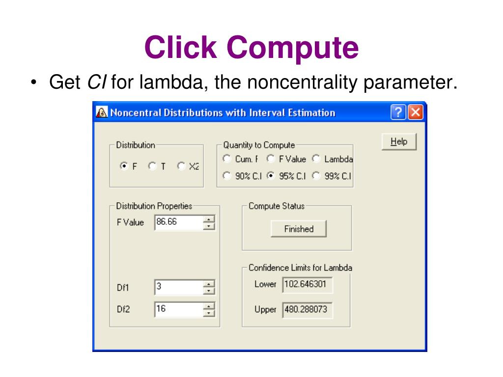 Click Compute • Get CI for lambda, the noncentrality parameter.