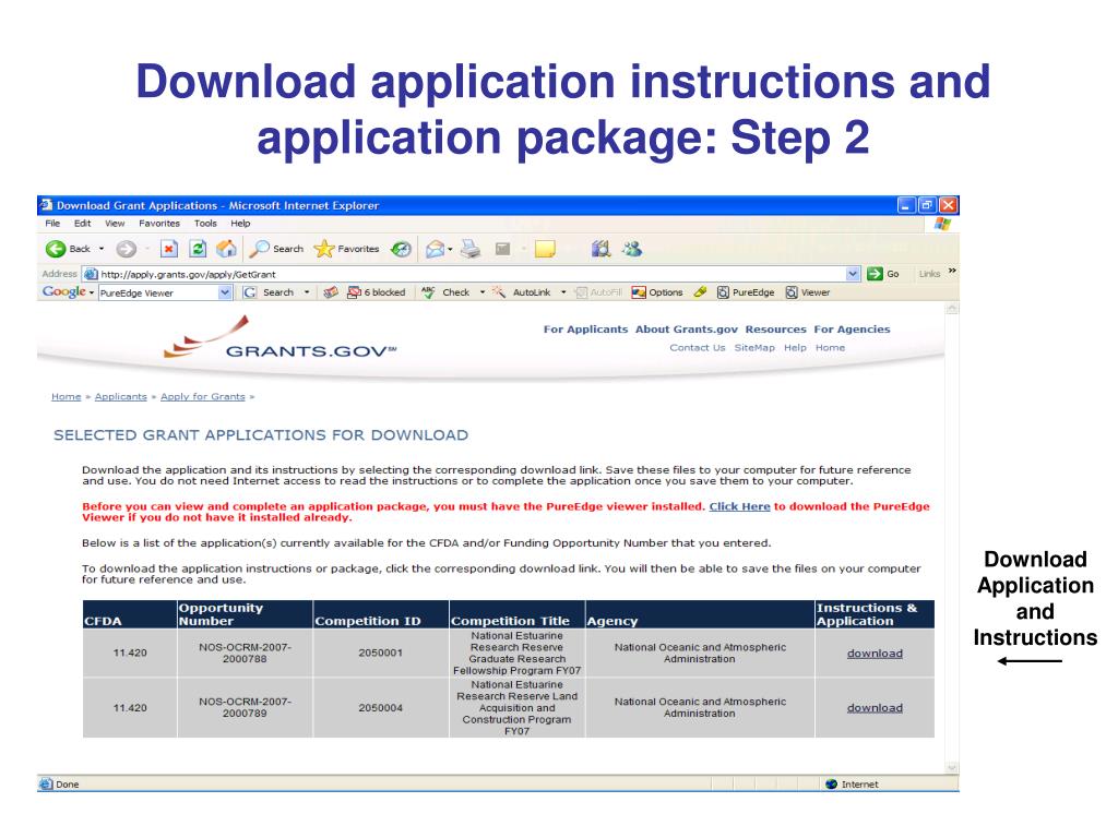 Download application instructions and application package: Step 2 Download Application and Instructions