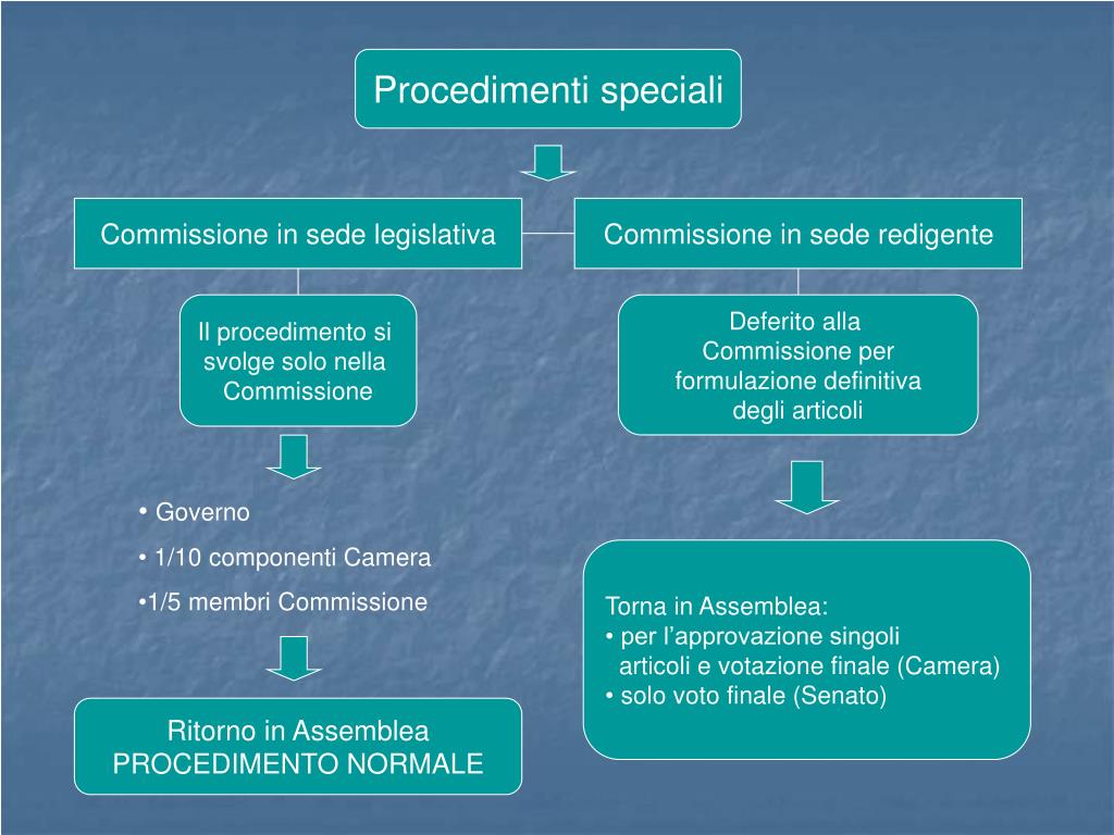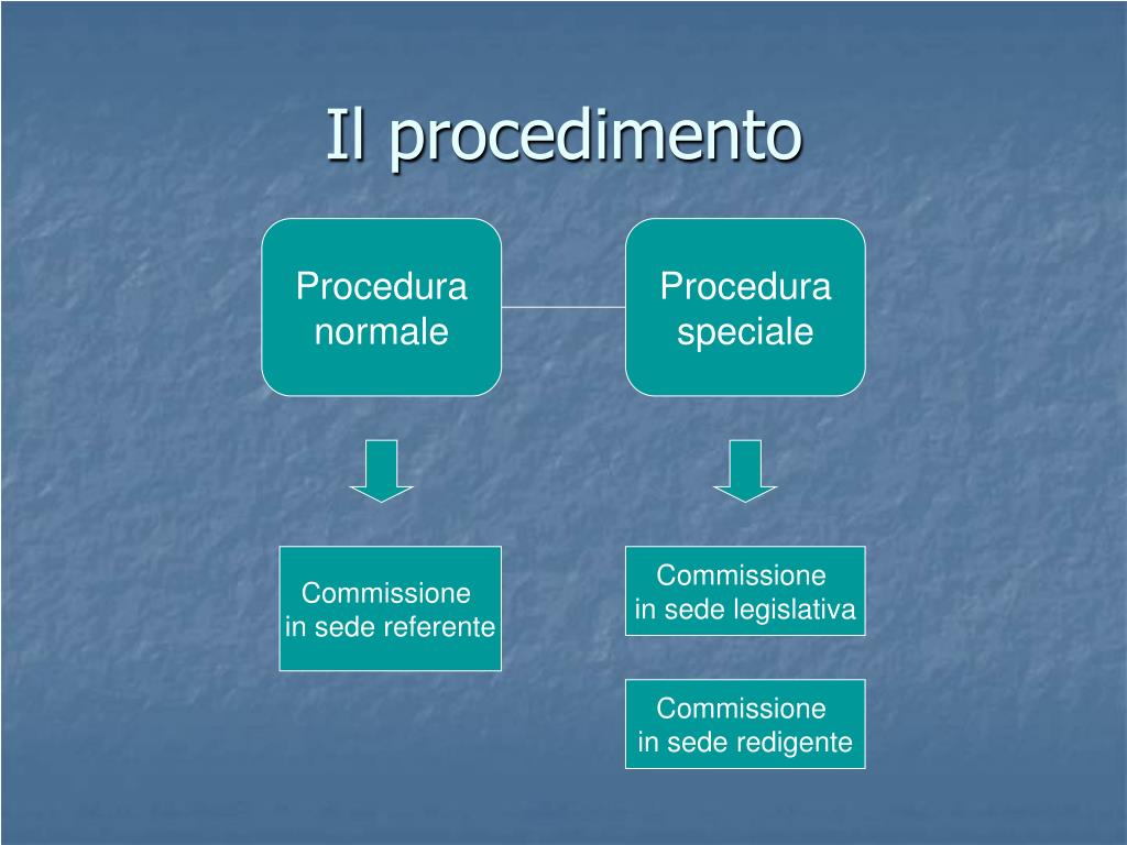 Il procedimento Procedura normale Procedura speciale Commissione in sede referente Commissione in sede legislativa Commissione in sede redigente