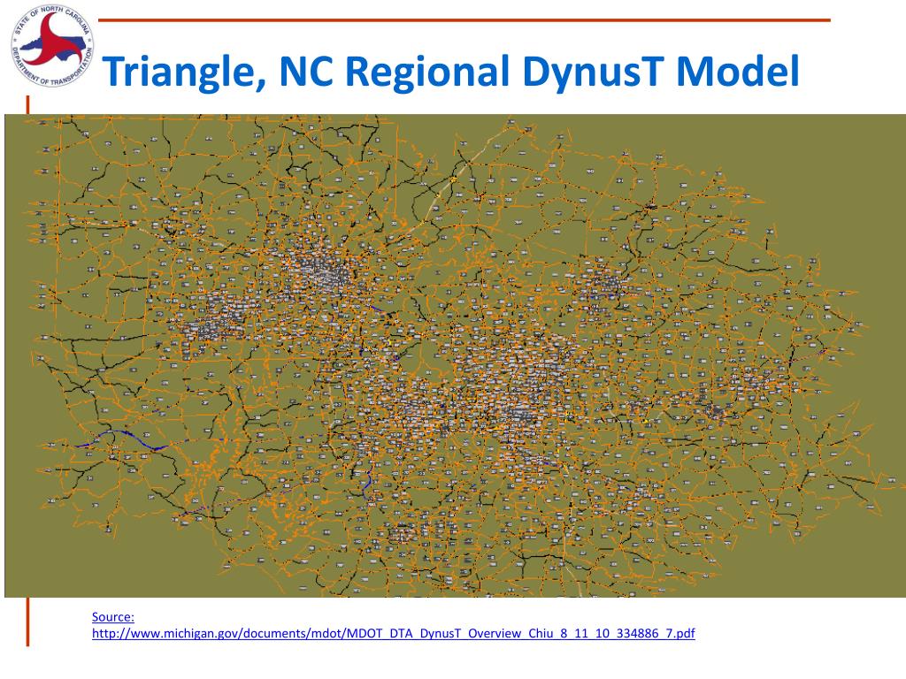 Triangle, NC Regional DynusT Model Source: http://www.michigan.gov/documents/mdot/MDOT_DTA_DynusT_Overview_Chiu_8_11_10_334886_7.pdf