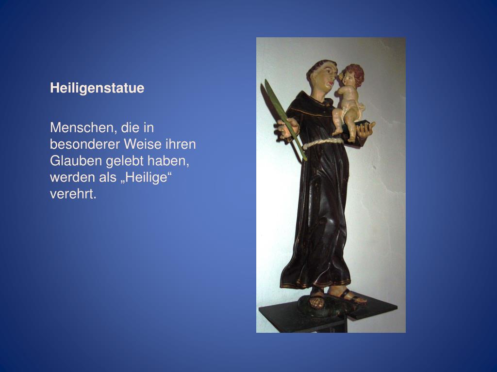 Heiligenstatue Menschen, die in besonderer Weise ihren Glauben gelebt haben, werden als „Heilige“ verehrt.
