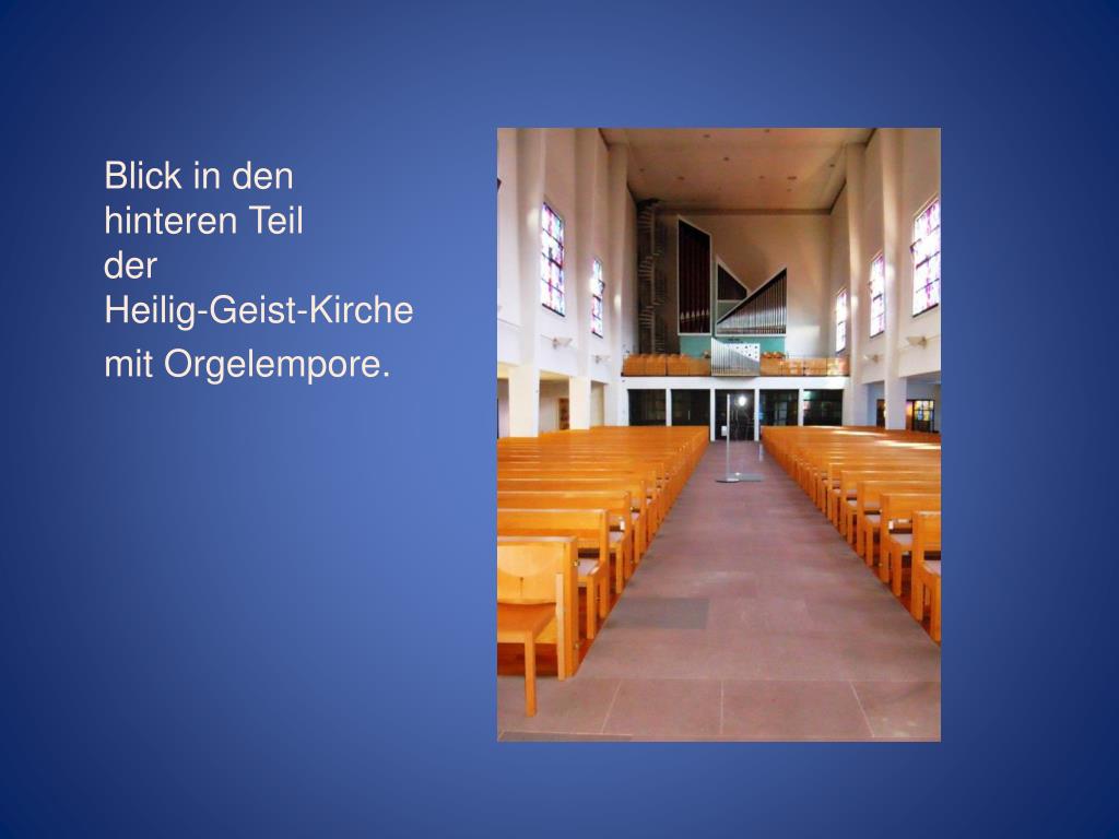 Blick in den hinteren Teil der Heilig-Geist-Kirche mit Orgelempore.