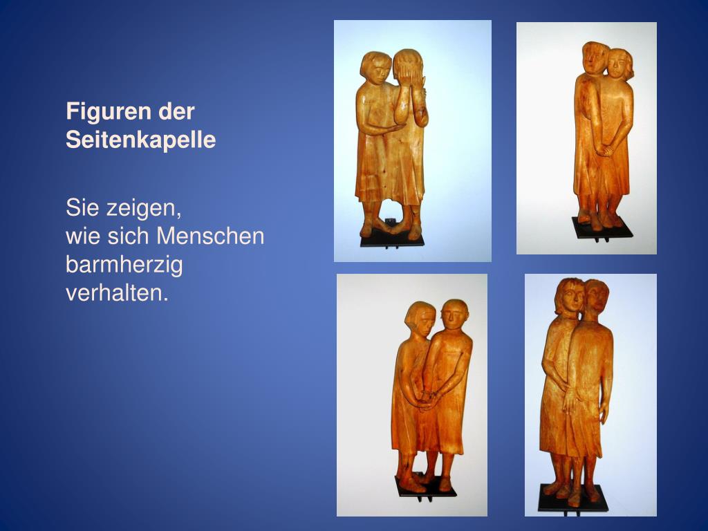 Figuren der Seitenkapelle Sie zeigen, wie sich Menschen barmherzig verhalten.