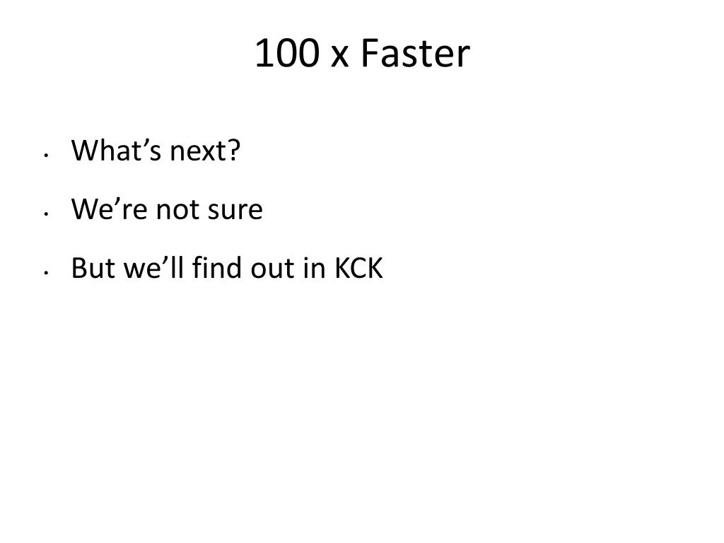 100 x Faster • What’s next? • We’re not sure • But we’ll find out in KCK