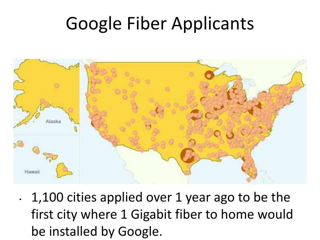 Google Fiber Applicants • 1,100 cities applied over 1 year ago to be the first city where 1 Gigabit fiber to home would be installed by Google.
