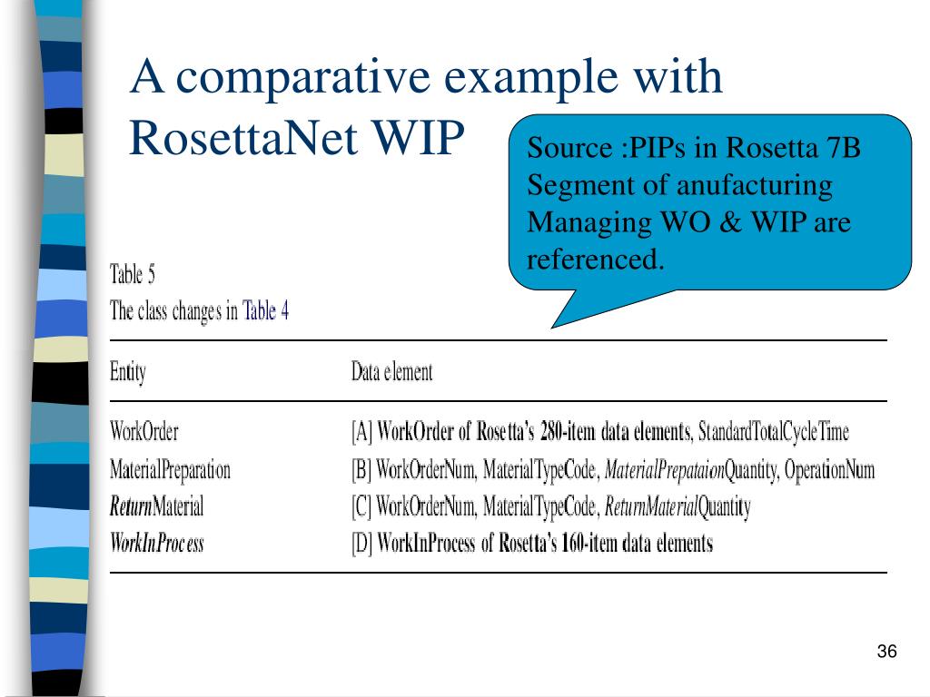 A comparative example with RosettaNet WIP Source :PIPs in Rosetta 7B Segment of anufacturing Managing WO & WIP are referenced.