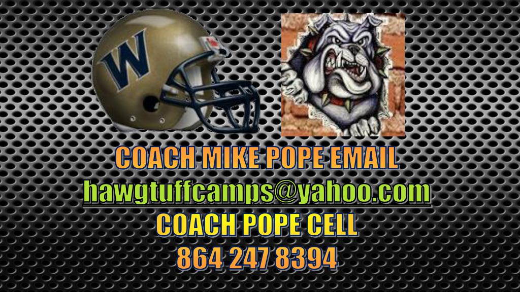 COACH MIKE POPE EMAIL hawgtuffcamps@yahoo.com COACH POPE CELL 864 247 8394