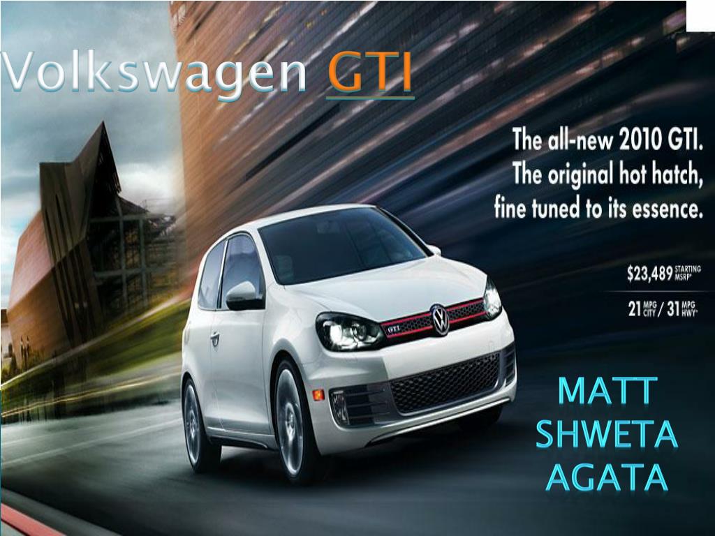 Volkswagen GTI. MaTT Shweta Agata. Volkswagen to Rely Solely on IPhone App for GTI Launch. Year 2006: GTI spent $60 million on a big-budget blitz with lots of network TV. Traditional TV Comm er cial