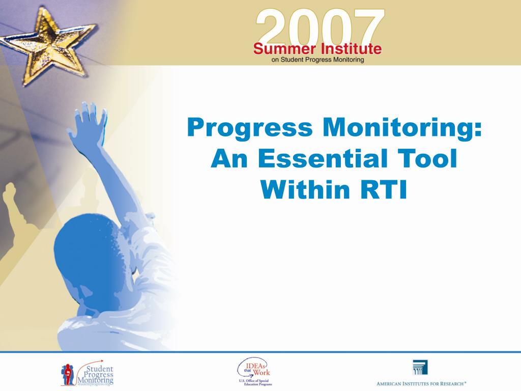 Note About This Presentation • Although we use progress monitoring measures in this presentation to illustrate methods, we are not recommending or endorsing any specific product.