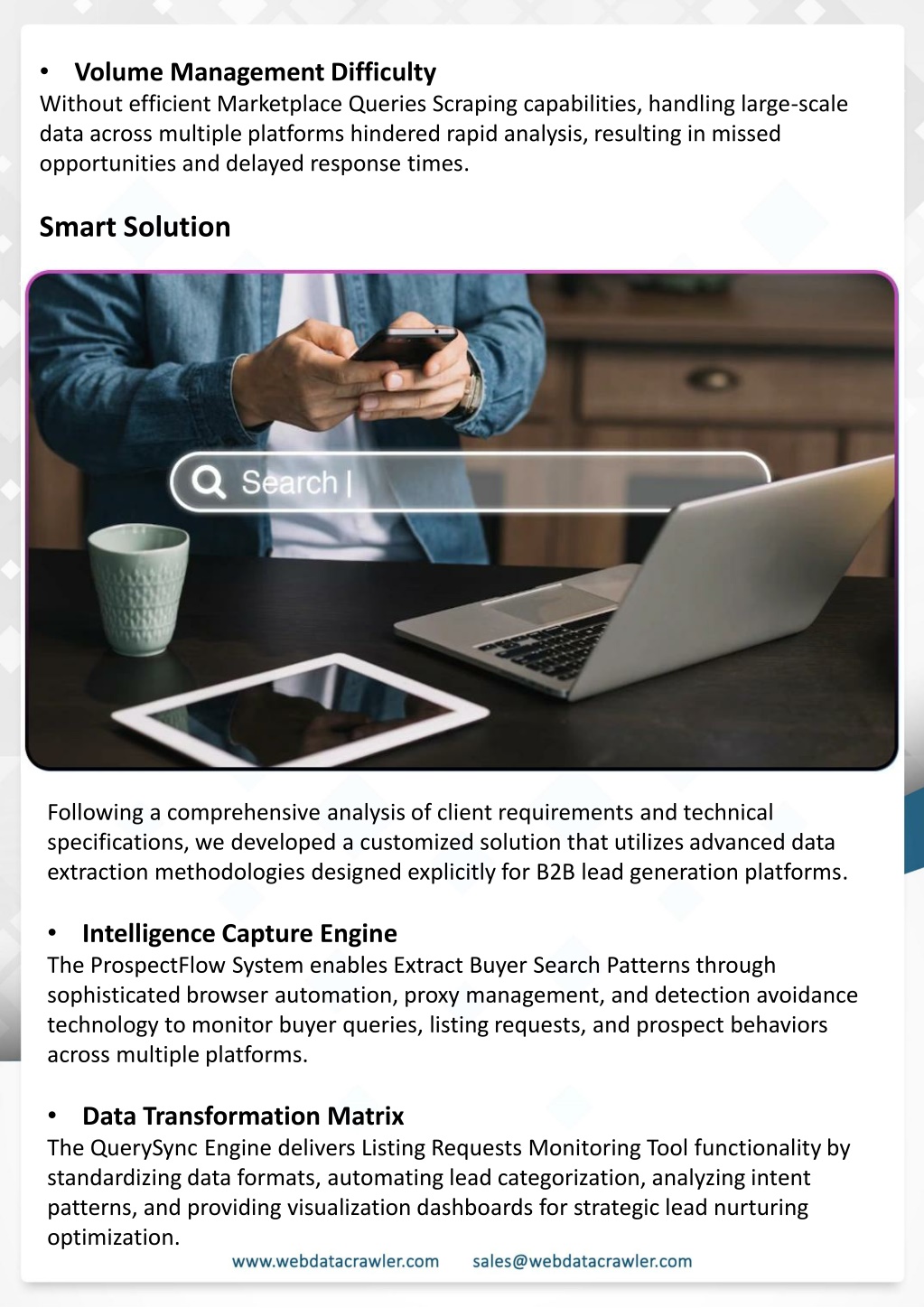 Enhance your sales funnel with Buyer Queries Scraping that collects listing requests and turns valuable buyer insights into scalable lead generation results.<br>
