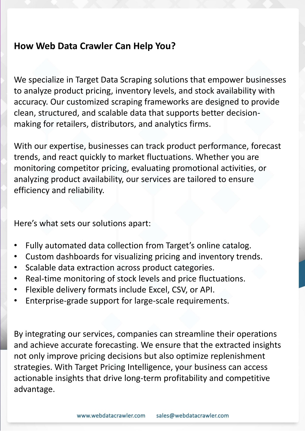 Gain valuable insights into pricing and stock updates with Target Data Scraping, designed to support smarter retail decisions and accurate product tracking.<br>