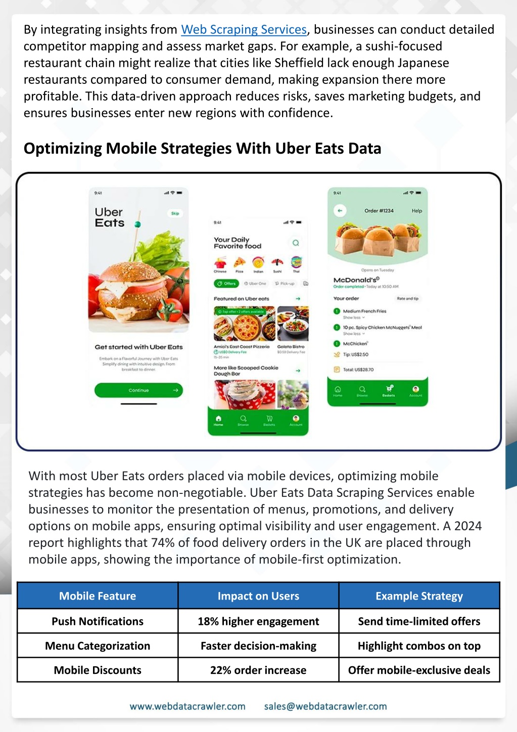 By integrating insights from Web Scraping Services, businesses can conduct detailed competitor mapping and assess market gaps. For example, a sushi-focused restaurant chain might realize that cities like Sheffield lack enough Japanese restaurants compared to consumer demand, making expansion there more profitable. This data-driven approach reduces risks, saves marketing budgets, and ensures businesses enter new regions with confidence. Optimizing Mobile Strategies With Uber Eats Data Understanding Web Scraping Foodhub Reviews Introduction This case study highlights how our Coupang Product Price Scraping Service revolutionized a client's market analysis and pricing optimization strategy. By deploying advanced techniques, we empowered the client with unmatched insights into the competitive dynamics of South Korea's leading e-commerce platform. Our customized solution delivered robust market intelligence, enabling clients to drive data-backed pricing decisions, swiftly adapt to market changes, and significantly enhance their profit margins. Leveraging our specialized Coupang Product Data Scraping Solutions scraping tools, the client gained the strategic edge necessary to excel within Coupang's fast-evolving marketplace. Introduction In today's dynamic quick-commerce landscape, staying competitive requires instant visibility into market pricing trends and consumer preferences. This case study examines how a leading grocery delivery chain with 30+ online stores across major Indian metropolitan areas leveraged Real-Time Grocery Price Monitoring solutions from us to transform their business intelligence capabilities and market positioning strategies. The client struggled with maintaining competitive pricing across thousands of SKUs and identifying regional pricing patterns. They also suffered revenue leakage due to suboptimal pricing strategies. They needed a comprehensive solution to provide detailed insights into quick-commerce market dynamics and enable precise price optimization across their diverse grocery catalog. The client revolutionized their approach to pricing strategy and inventory management by implementing advanced Grocery Price Data Scraping technologies. This resulted in remarkable improvements in market responsiveness, profit margins, and substantial revenue growth. The Client With most Uber Eats orders placed via mobile devices, optimizing mobile strategies has become non-negotiable. Uber Eats Data Scraping Services enable businesses to monitor the presentation of menus, promotions, and delivery options on mobile apps, ensuring optimal visibility and user engagement. A 2024 report highlights that 74% of food delivery orders in the UK are placed through mobile apps, showing the importance of mobile-first optimization. Web scraping involves extracting large amounts of data from websites in an automated manner. Foodhub Reviews Scraper is designed to help businesses collect customer reviews from Foodhub, a popular food delivery platform. By scraping reviews, ratings, and feedback from customers, businesses can gain insights into various aspects of their service, including food quality, delivery times, and customer satisfaction. Instead of relying on manual data collection, Foodhub Reviews Data Collection through scraping allows for real-time access to a large volume of structured data, which is essential for making informed decisions. Client Success Story