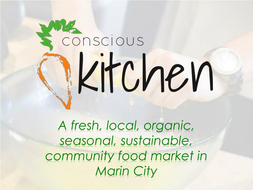 A fresh, local, organic, seasonal, sustainable, community food market in Marin City. Today’s agenda. 4:10 – Introductions (:10) 4:20 – Overview Conscious Kitchen in Marin City (:20) 4:40 – Introduce Conscious Eats Concept (:10) 4:50 – Break Out 1 (:20) 5:10 – Break Out 2 (:20)
