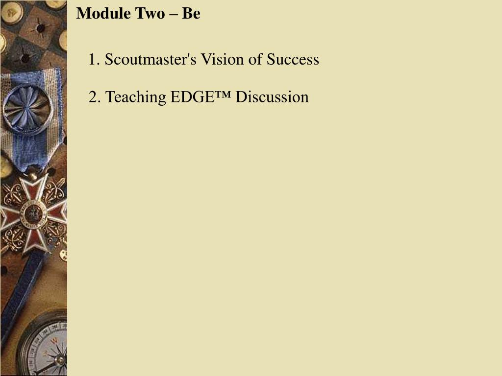 Module Two – Be 1. Scoutmaster's Vision of Success 2. Teaching EDGE™ Discussion