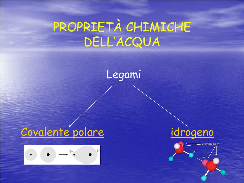PROPRIETÀ CHIMICHE DELL’ACQUA Legami Covalente polare idrogeno