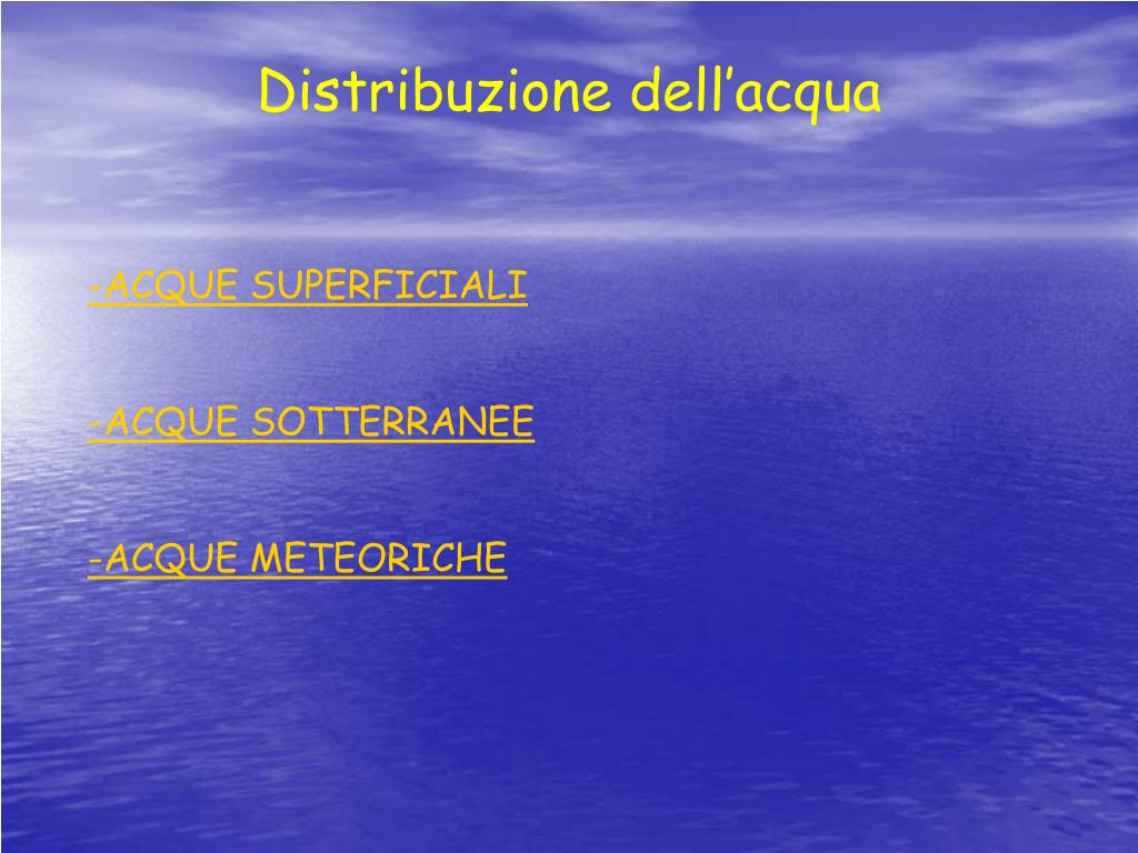 Distribuzione dell’acqua -ACQUE SUPERFICIALI -ACQUE SOTTERRANEE -ACQUE METEORICHE