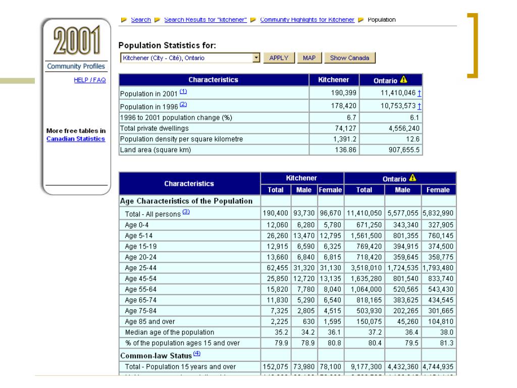 Statistics • Statistics Canada – The Census • http://www12.statcan.ca/english/census01/home/index.cfm • 1996 and 2001 Census information • Data can be searched by topic • Community profiles give a snapshot of a particular area • E-Stat is another source of Census data (1665-1871 and 1986-2001) - use is restricted to educational institutions and depository libraries 21st Century Government Documents - OLA Super Conference