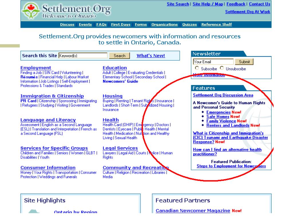 Citizenship and Immigration • Settlement.org • Site designed for two audiences: newcomers to Ontario and those who work with newcomers • Information and resources across the spectrum for people settling in Ontario • Employment, Education, Housing, Health, Immigration and Citizenship, Language and Literacy, Legal Services, Consumer, Community and Recreation 21st Century Government Documents - OLA Super Conference
